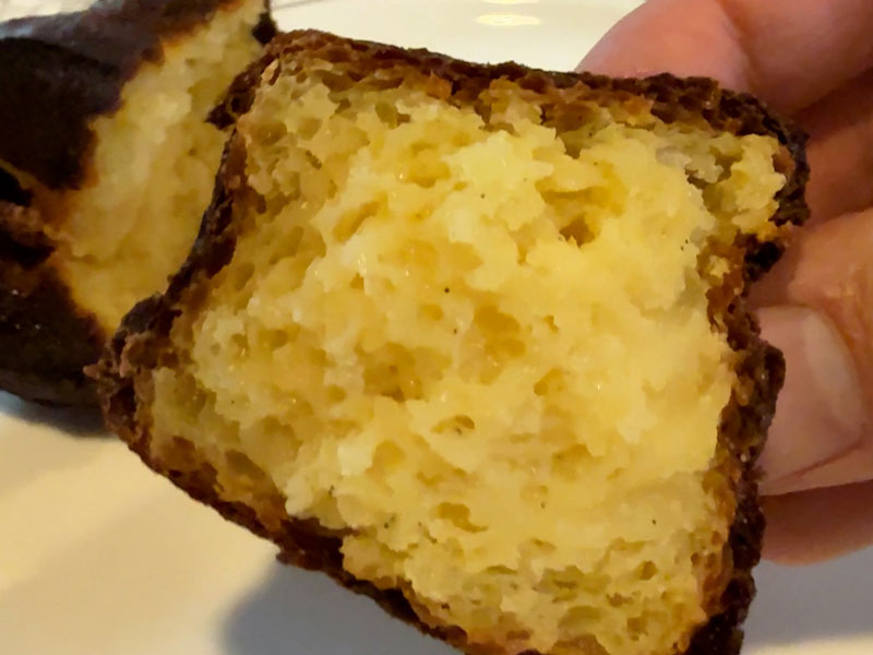 対比が光る食感: 丁寧に焼き上げられた生地は、中は驚くほどしっとりと滑らか。外側との食感のコントラストが、食べる楽しさを教えてくれる。
