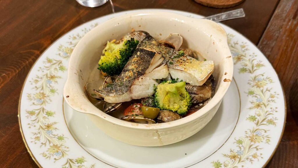 ・北海道産タラのオーブン焼き: 「アクアパッツァ風」というサブタイトル通り、魚の旨味が凝縮された一品。